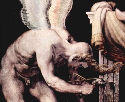 Dit is een afbeelding van Kairos, onderdeel van een wandschildering gemaakt door Francesco Salviati, te zien in het Palazzo Sacchetti te Rome: