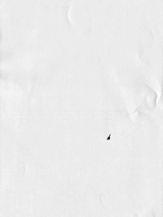 Ik laat de telefoon de telefoon en kijk naar het papier voor me. Het minimalistische beeld met die slordige stip fascineert. Het is alsof ik naar vers gevallen sneeuw kijk, met slechts een enkele voetstap erin. De aarde eronder, beladen met daden en dingen, is onzichtbaar. Tabula rasa. Onbeschreven blad. Schone lei. Nieuwe ronde, nieuwe kansen. We verlangen er allemaal wel eens naar, zeker zo aan het begin van het nieuwe jaar.
